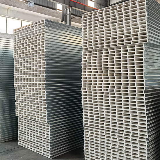 其芯材為中空板材,中空玻鎂板的輕質(zhì),防火的特性,適用于隔墻、臨時(shí)性的房屋墻面、鋼結(jié)構(gòu)房屋等,具有施工簡單,節(jié)省成本的優(yōu)勢(shì)。且用于車間隔墻在電氣施工鋪設(shè)暗線時(shí)較為方便,該產(chǎn)品投入生產(chǎn)后被廣泛使用于凈化車間無塵室的吊頂及隔墻。